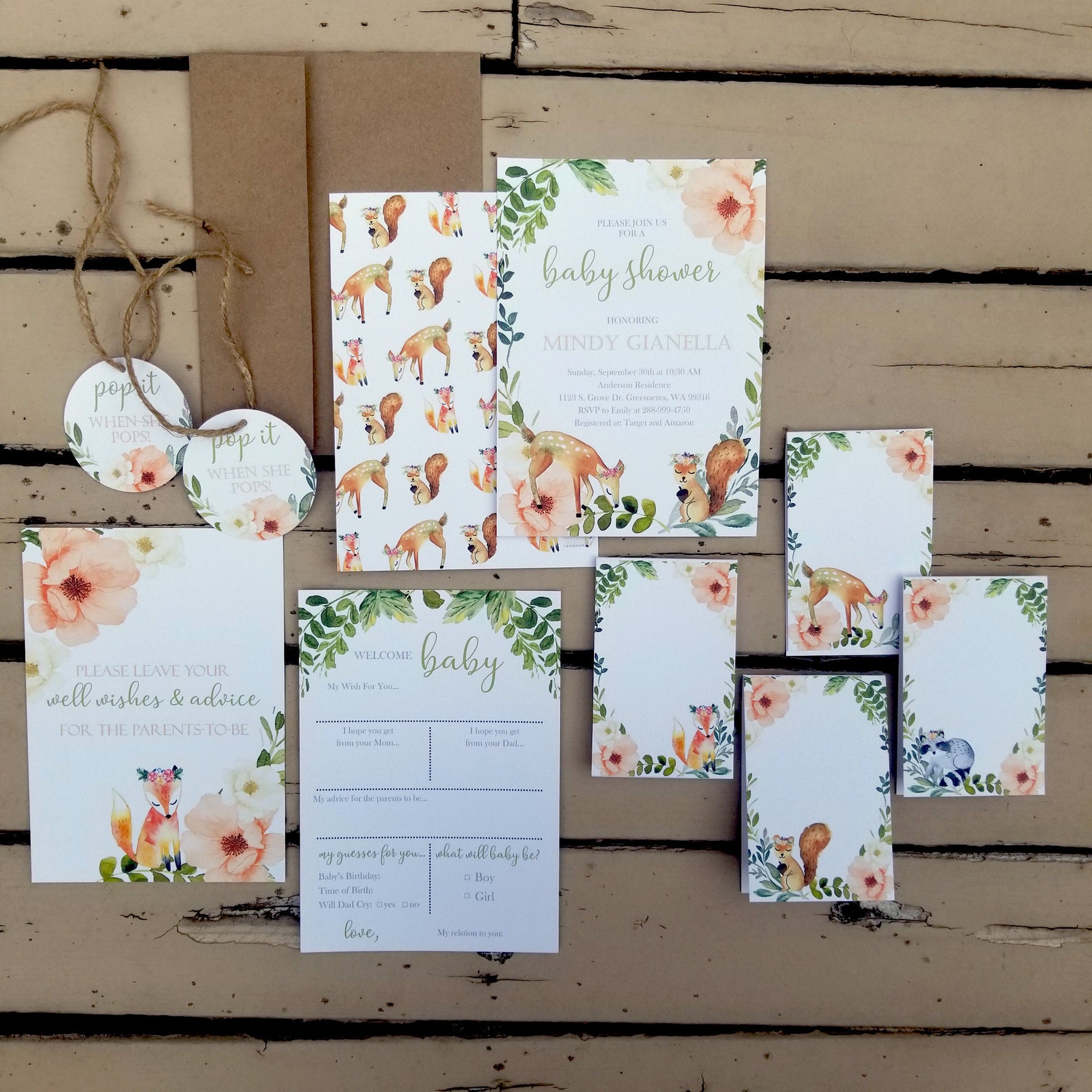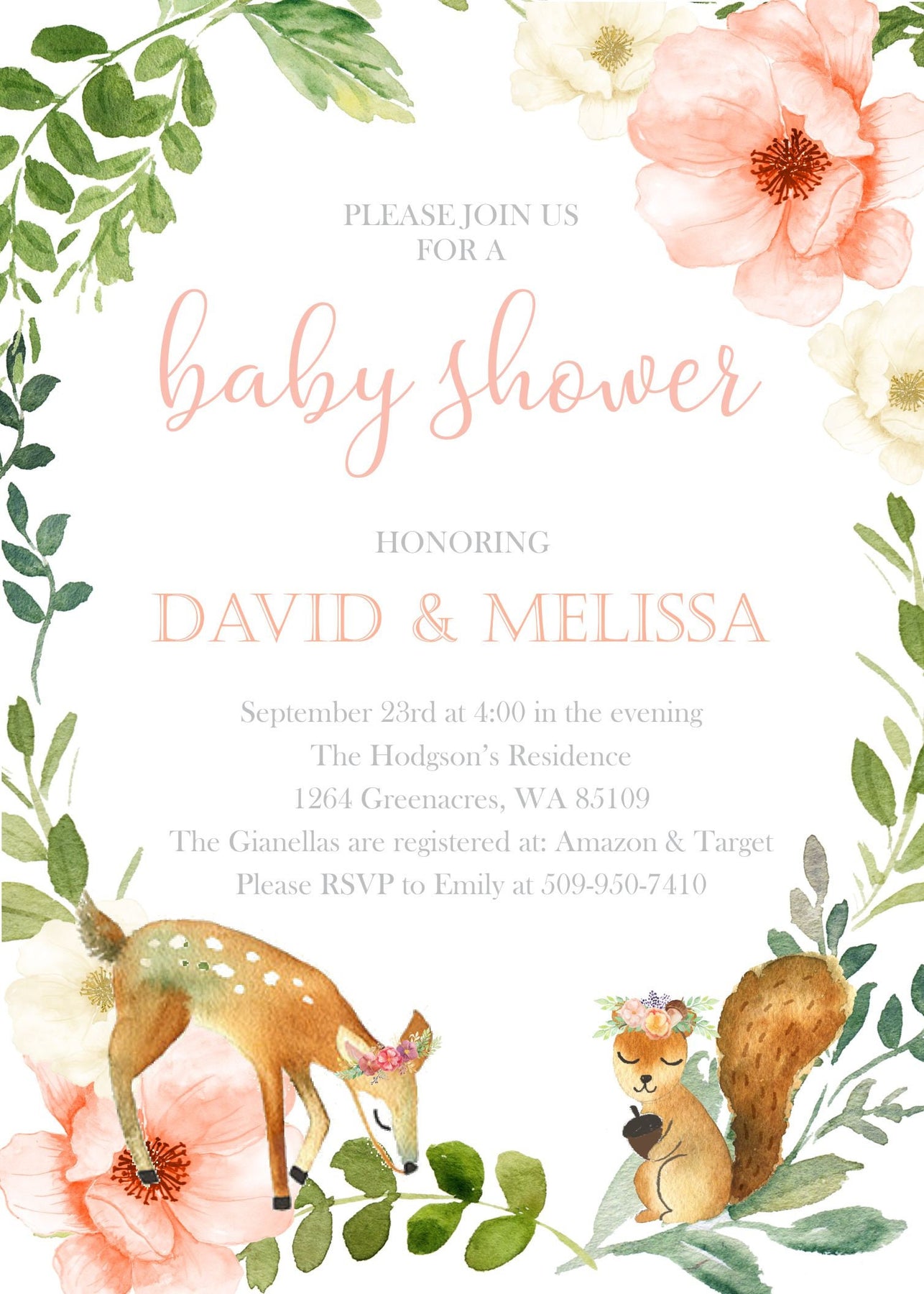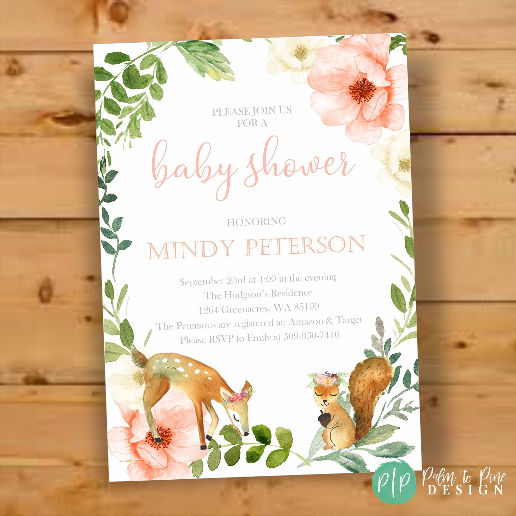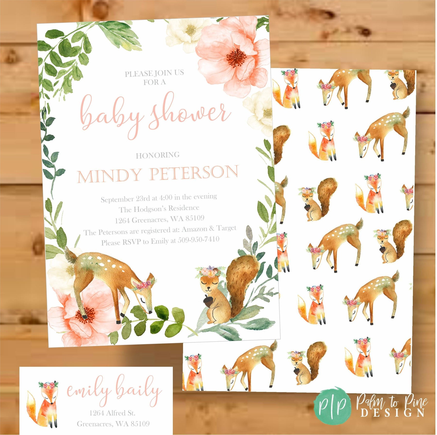 This floral boho woodland baby shower invitation is perfect for a little girls, boys or gender neutral woodland baby shower and can also be customized for birthday's too! The adorable watercolor woodland animals, with flower garland wreaths are perfect to celebrate any mama to be at her baby shower! This card can also be customized for any age birthday or occasion!