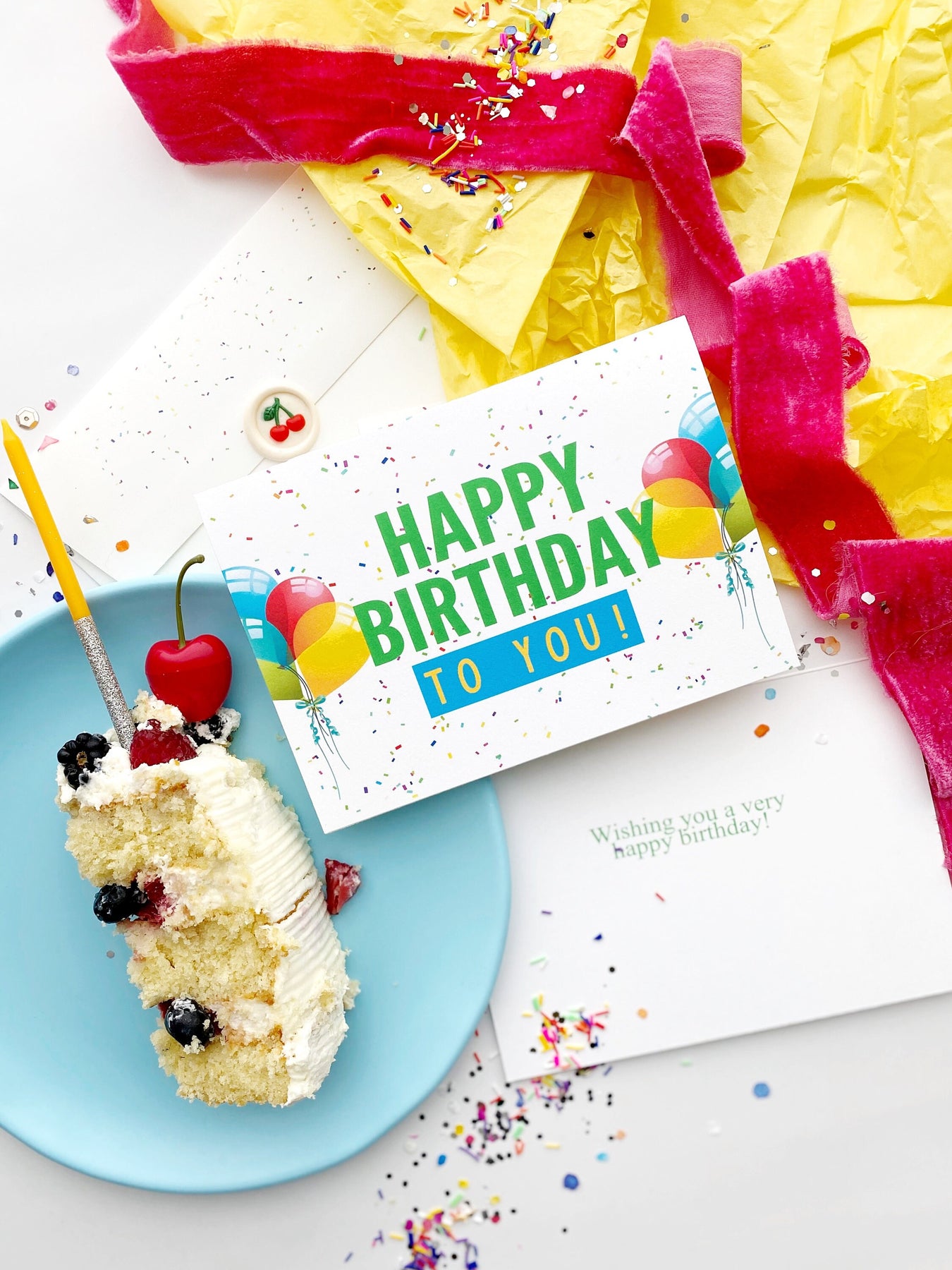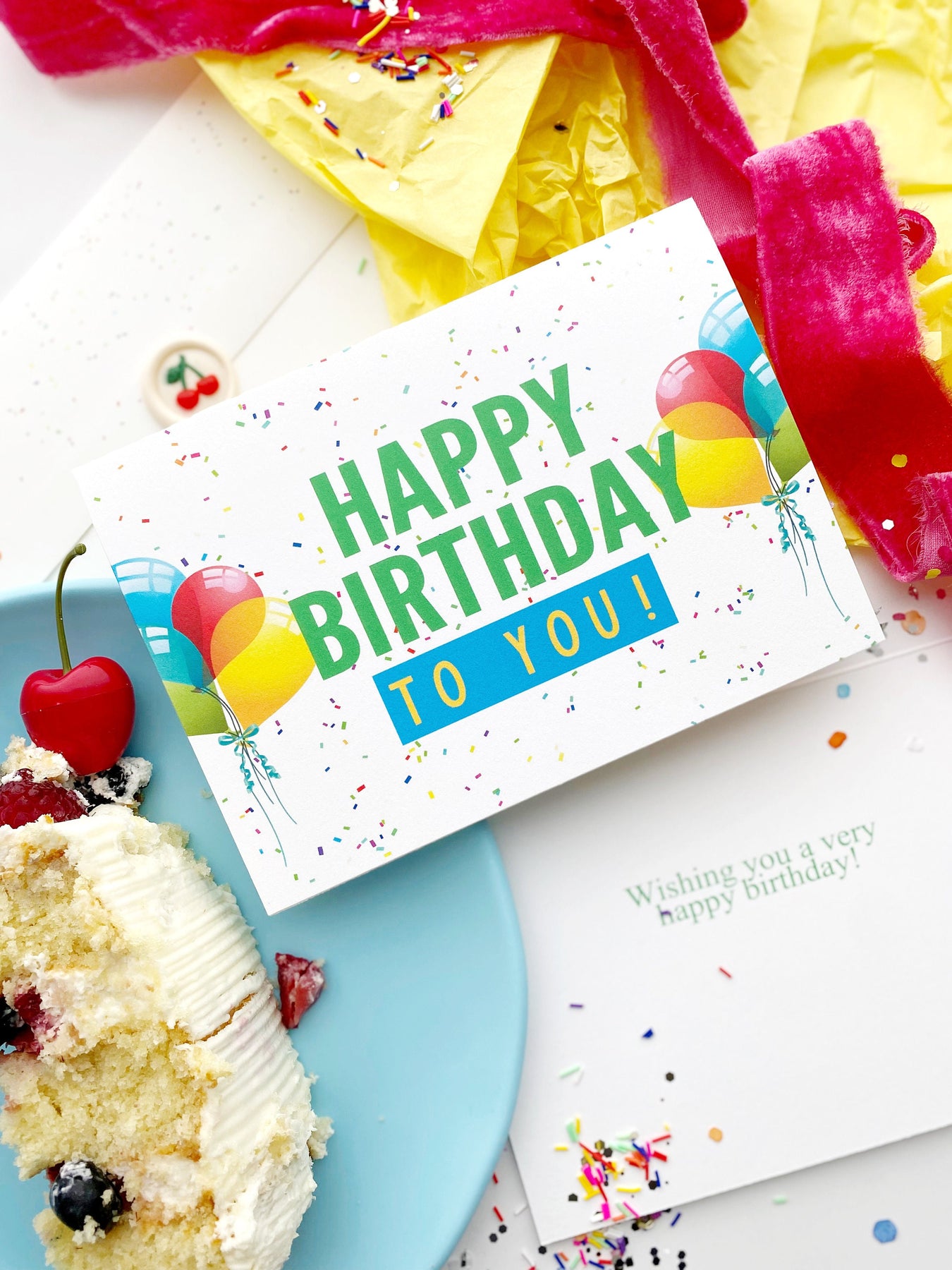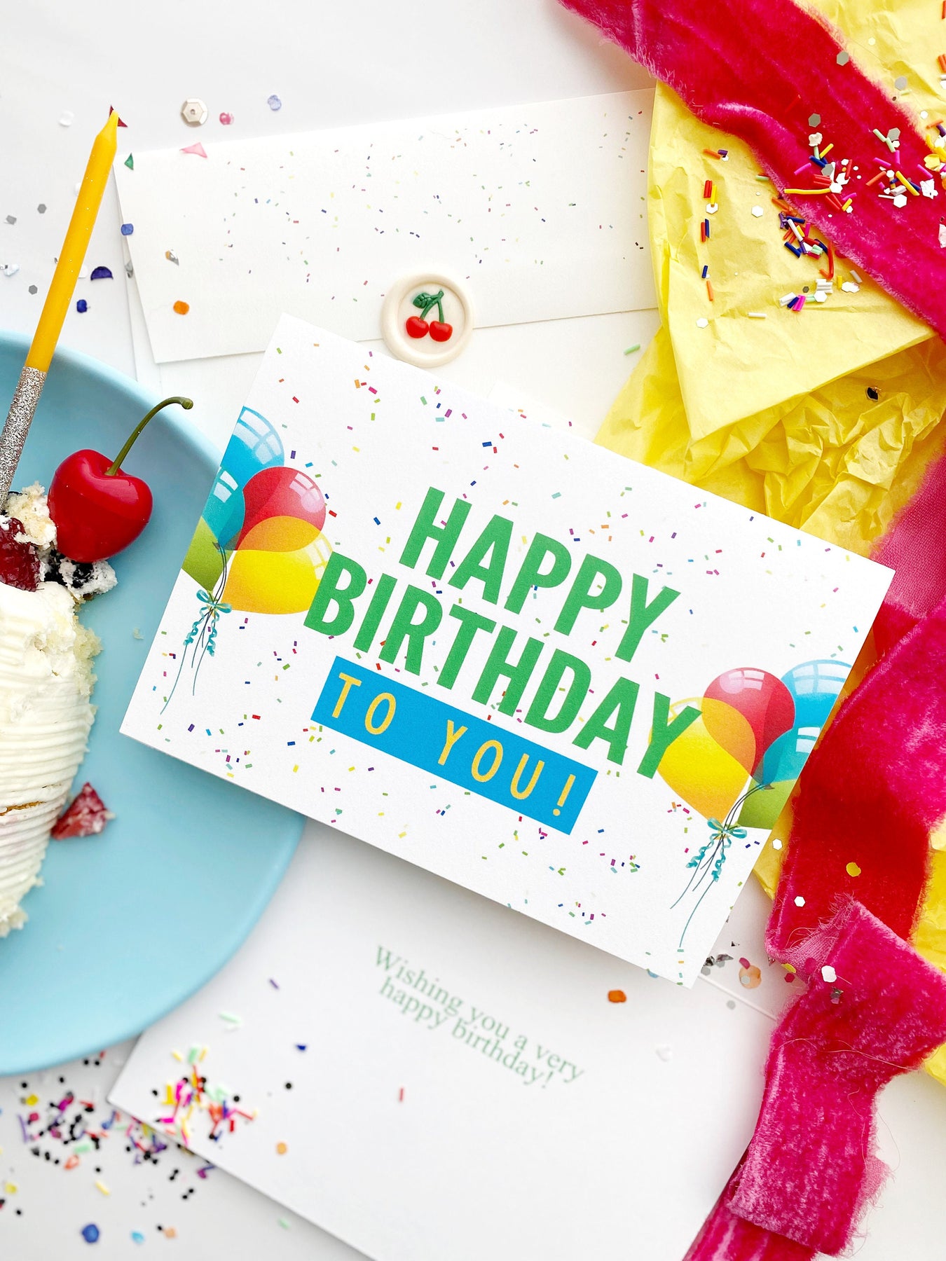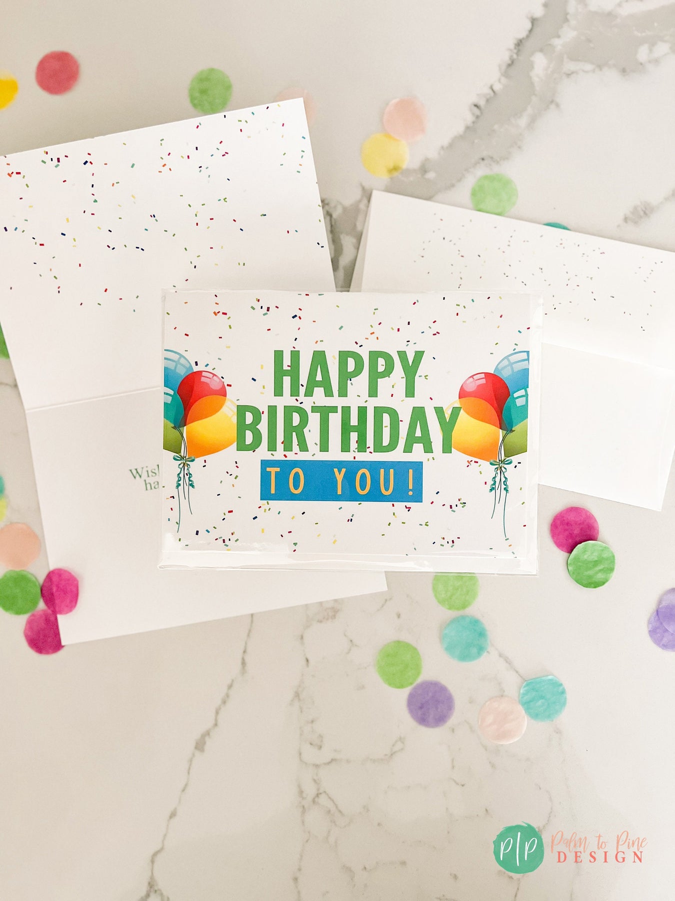 This colorful and cheerful professionally printed 5x7" folded greeting card is the perfect way to say Happy Birthday for any age kid or adult in your life. This beautiful, high quality happy birthday greeting card in white with confetti polka dots and balloons is printed on ultra thick, 120 lb. cardstock and includes a matching custom printed envelope with confetti dots as well. The birthday recipient will love this thoughtful and custom birthday card.
