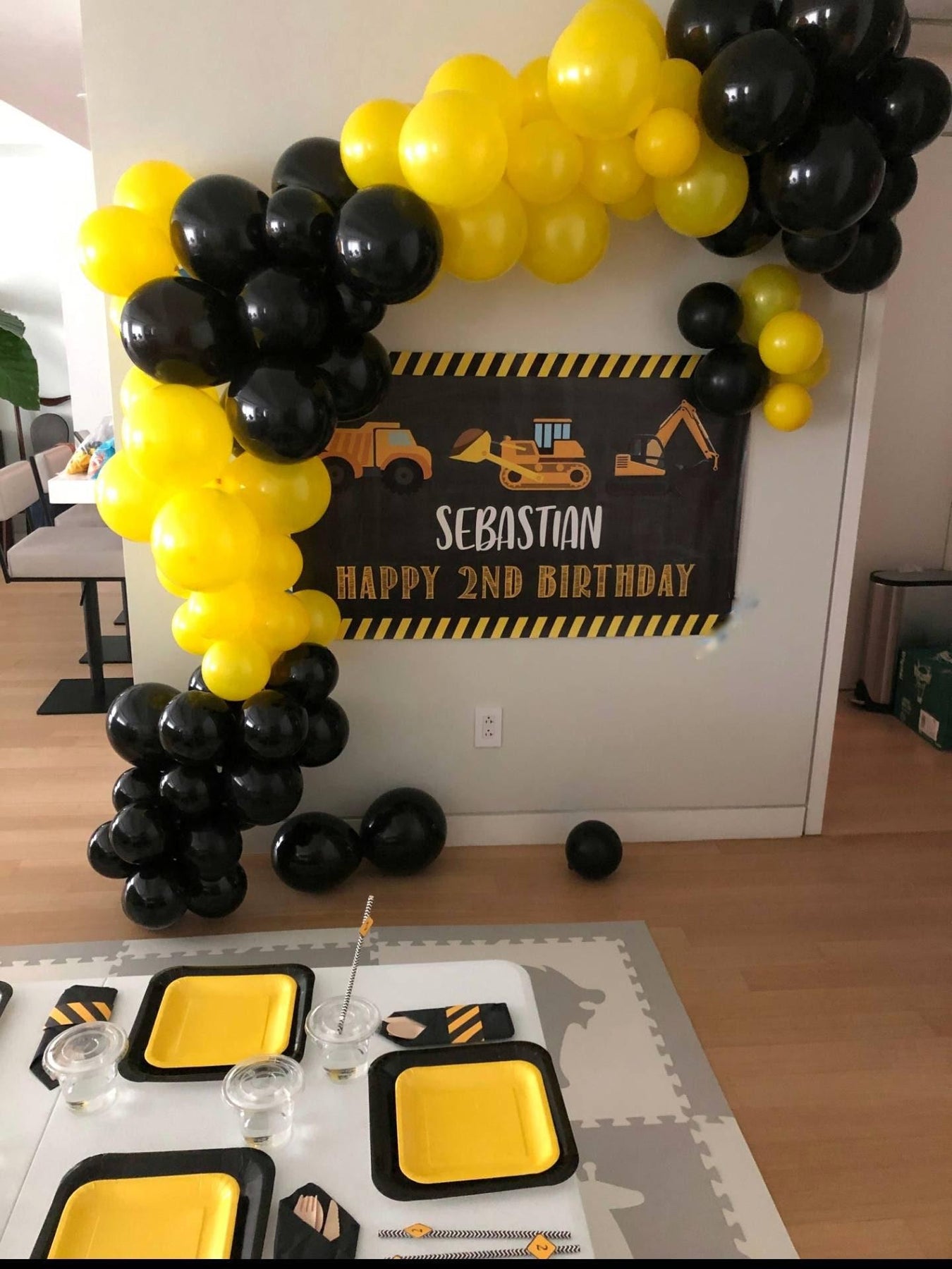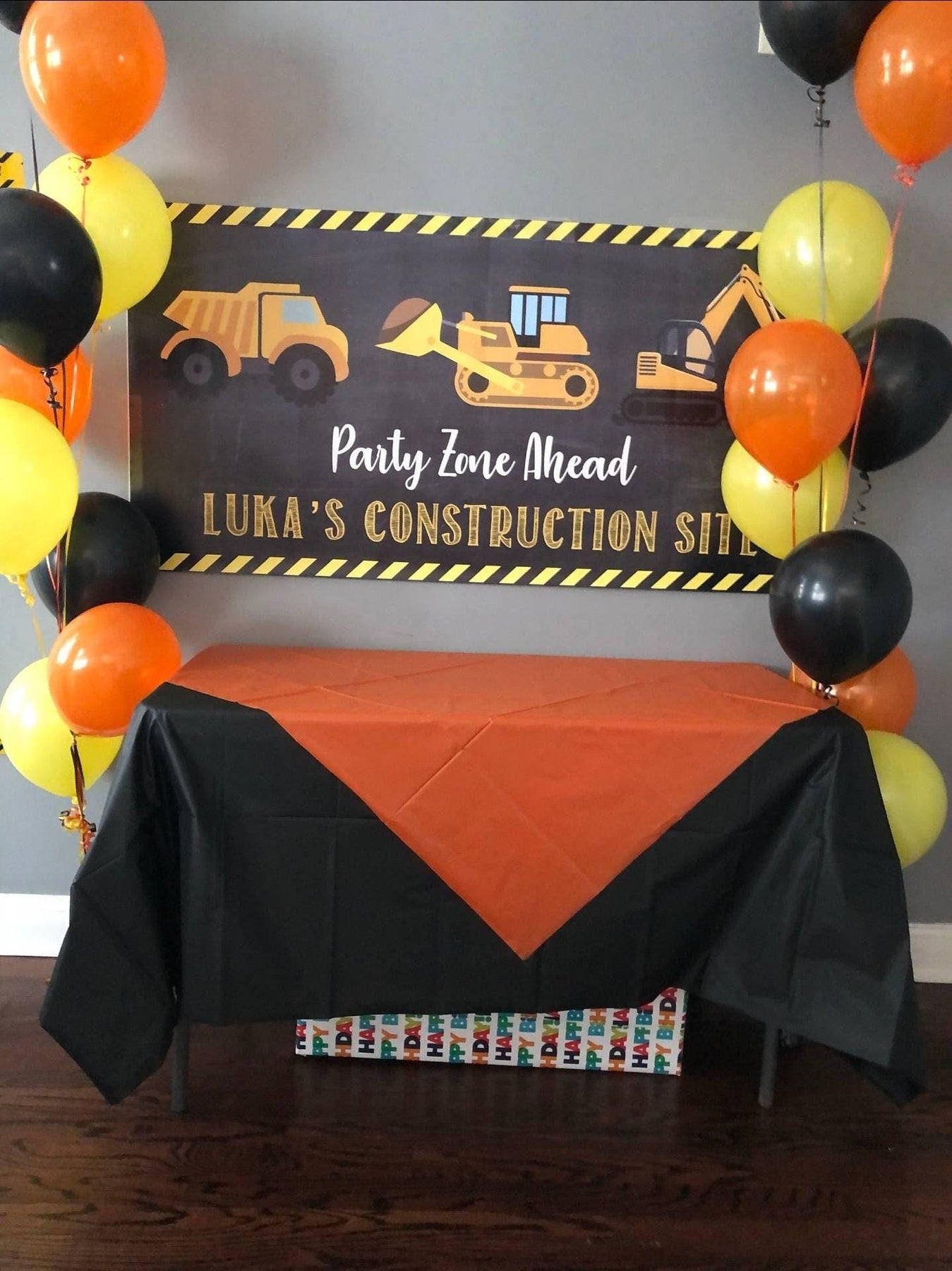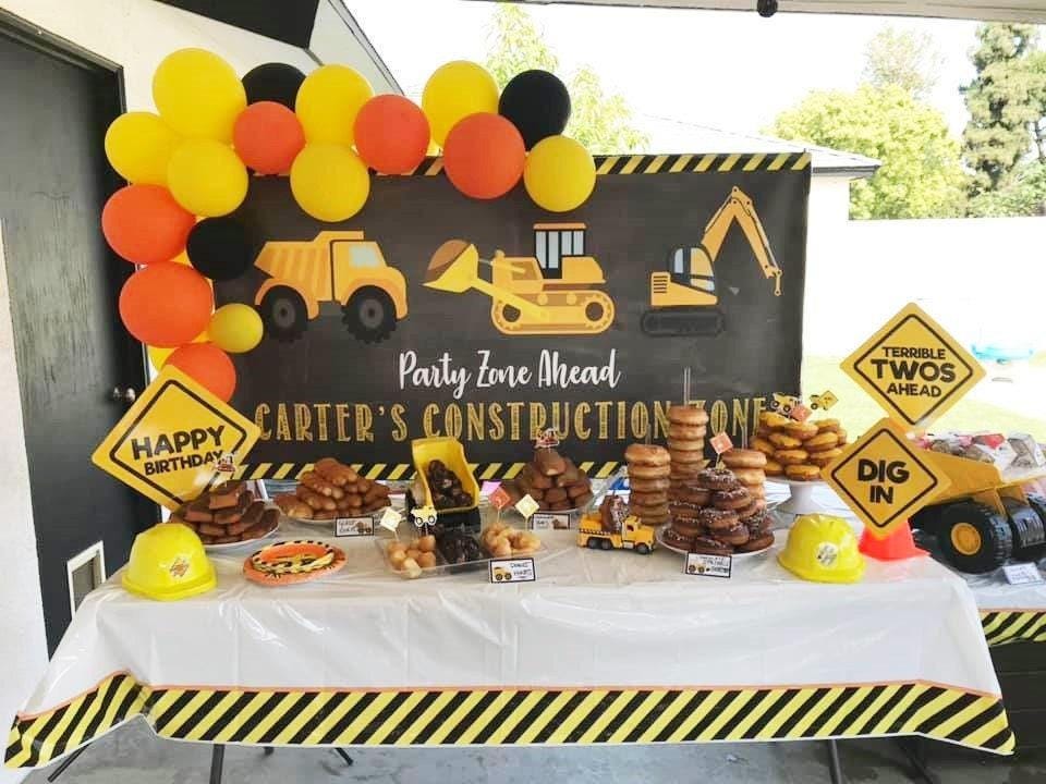 This personalized construction birthday banner in distressed chalkboard style black and yellow is the perfect personalized backdrop to make a statement for your Little Construction Workers Birthday party. The excavator, digger and bulldozer with caution tape are perfect for any type of party! The wording on this distressed chalkboard inspired vinyl banner can also be customized, just include your request in your notes to seller section at checkout!