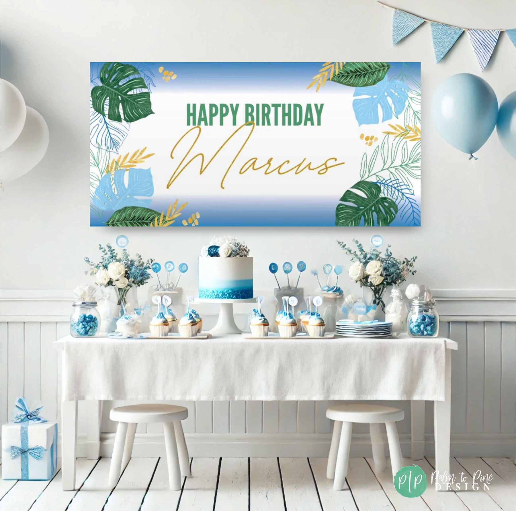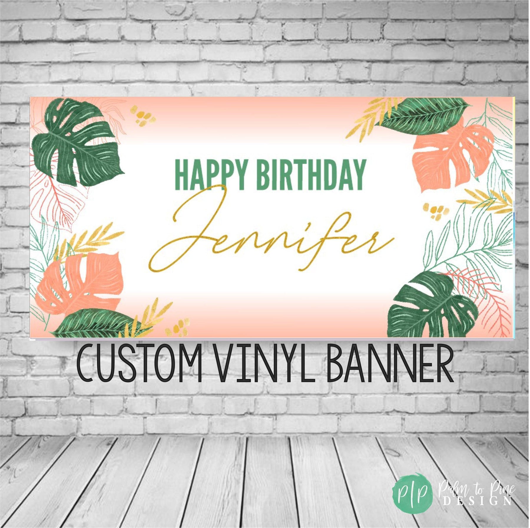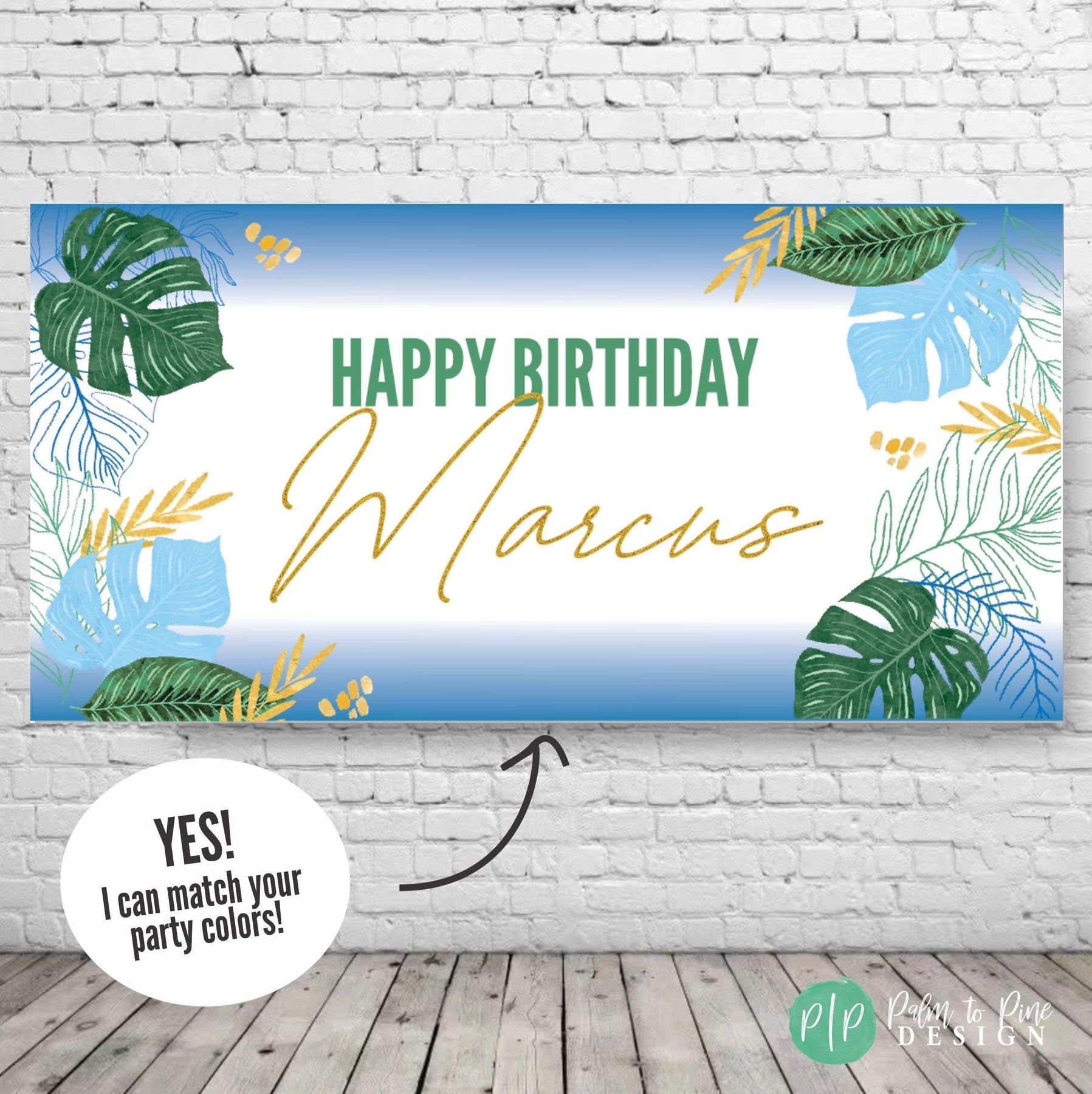 BANNER DETAILS: The banner comes in two finishes, digital or printed. The printed banner is sized as an 18x36", 24x48", 30x60" or 36"x66", 42x84" or 48x96 and professionally printed on durable 13 oz scrim vinyl (this is a waterproof, super thick and highly durable banner that really makes a WOW statement at your tropical birthday party!)