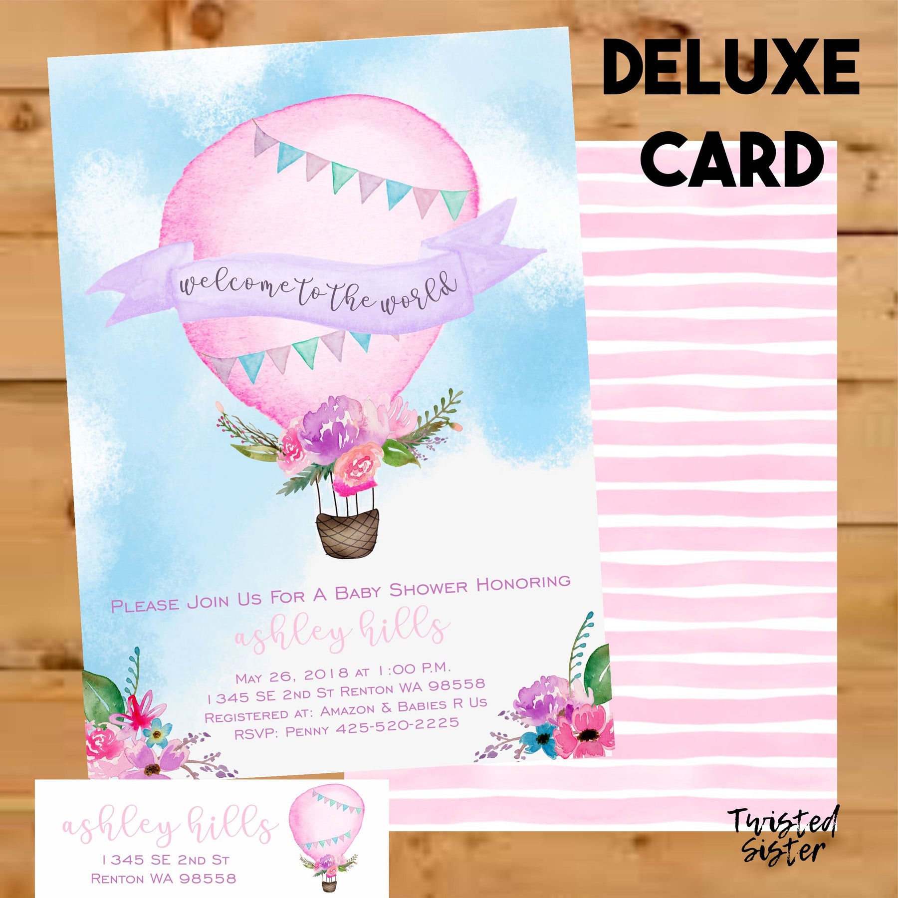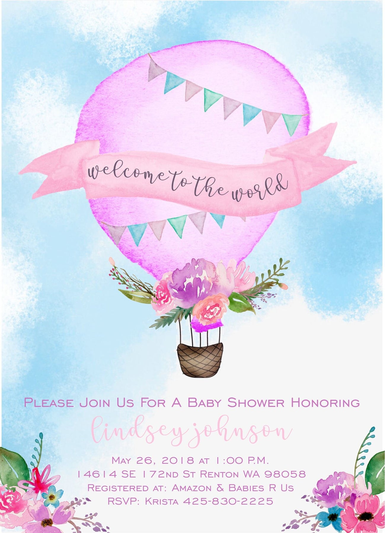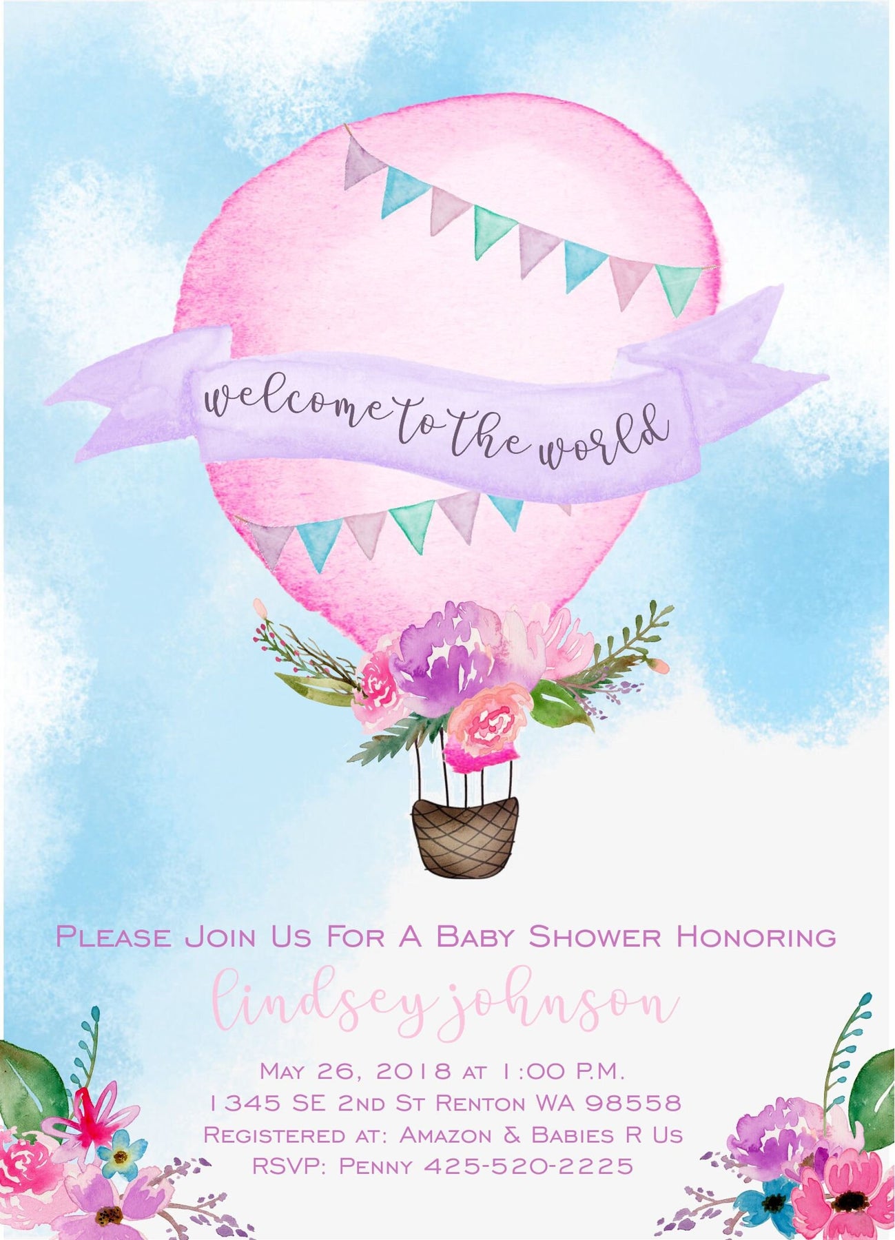 This Up up and Away Hot Air Balloon Baby Shower Invite is perfect for your Welcome to the World Baby Shower or Hot Air Balloon Birthday for your little girl. The soft pastel hot air balloon with watercolor flowers is perfect for a classic and boho chic baby shower for a boy, girl, twins or gender neutral baby shower. This baby shower invite can be customized too for any type of Baby Shower, Sprinkle, Couples Baby shower or even a birthday! Just include your request in your notes to seller section at checkout!
