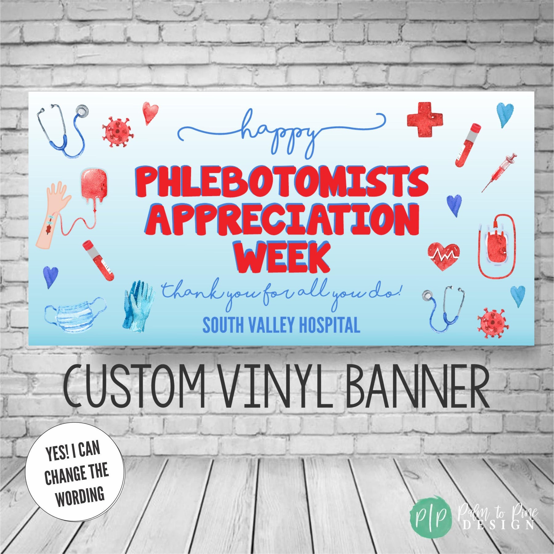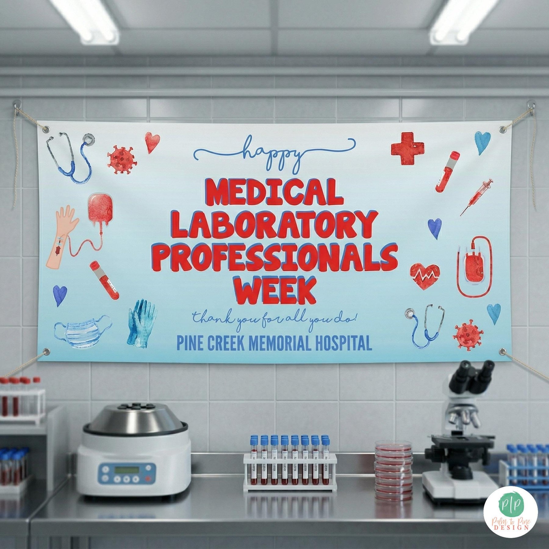 Celebrate Medical Laboratory Professionals Week with this beautifully designed appreciation banner to say thank you to our healthcare heroes. This custom banner can be personalized for hematology teams, phlebotomists, blood specialists, transfusion nurses, and other medical laboratory professionals as a heartfelt way to say “thank you” for their essential contributions to healthcare, and appreciation weeks for your medical team. Whether it’s a department celebration or staff appreciation event, this banner makes recognition visible and memorable.
