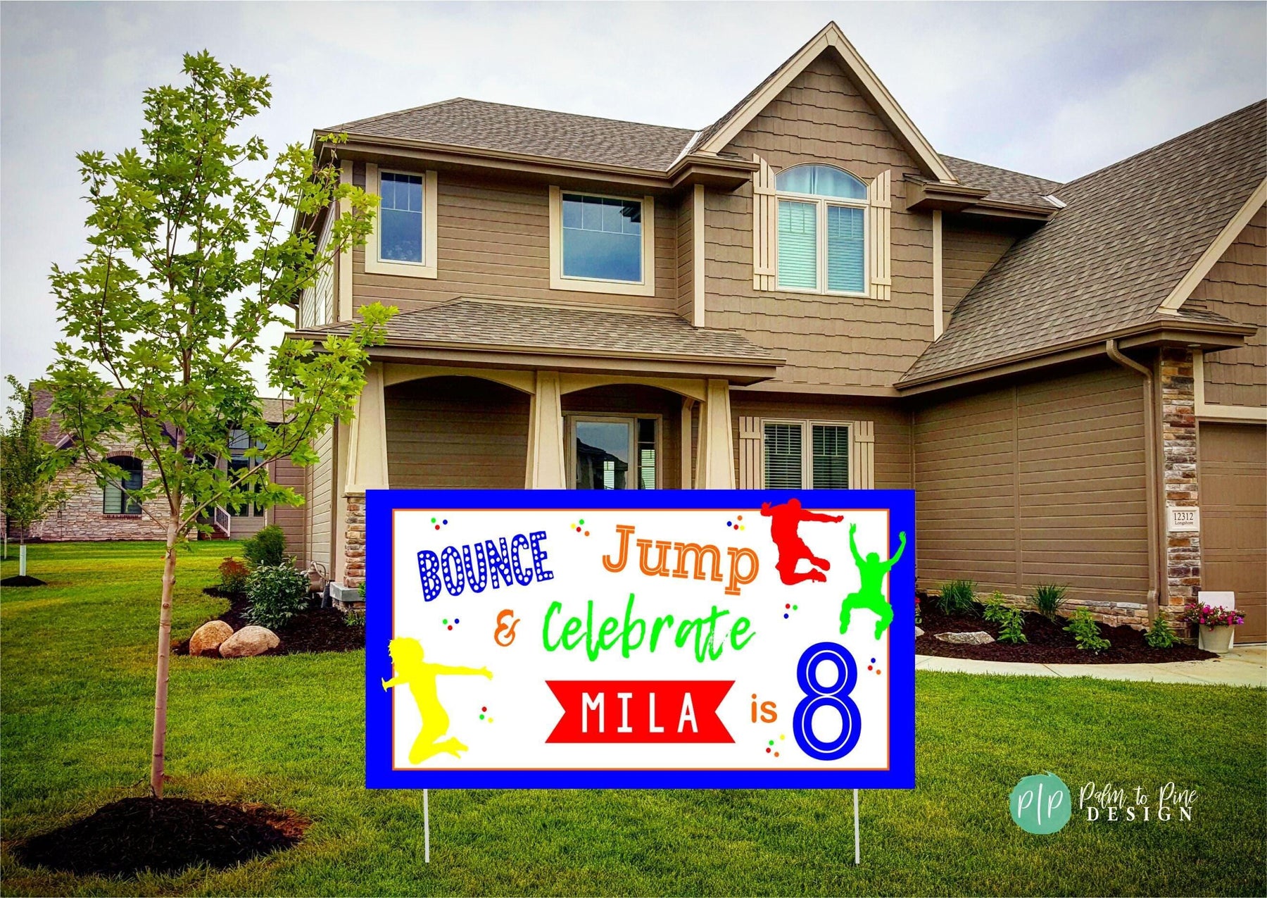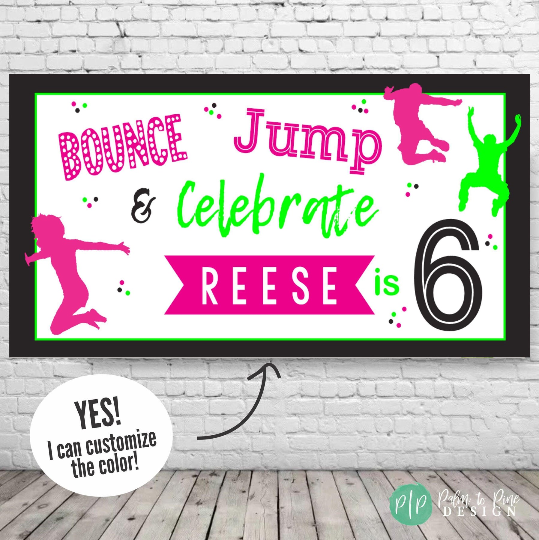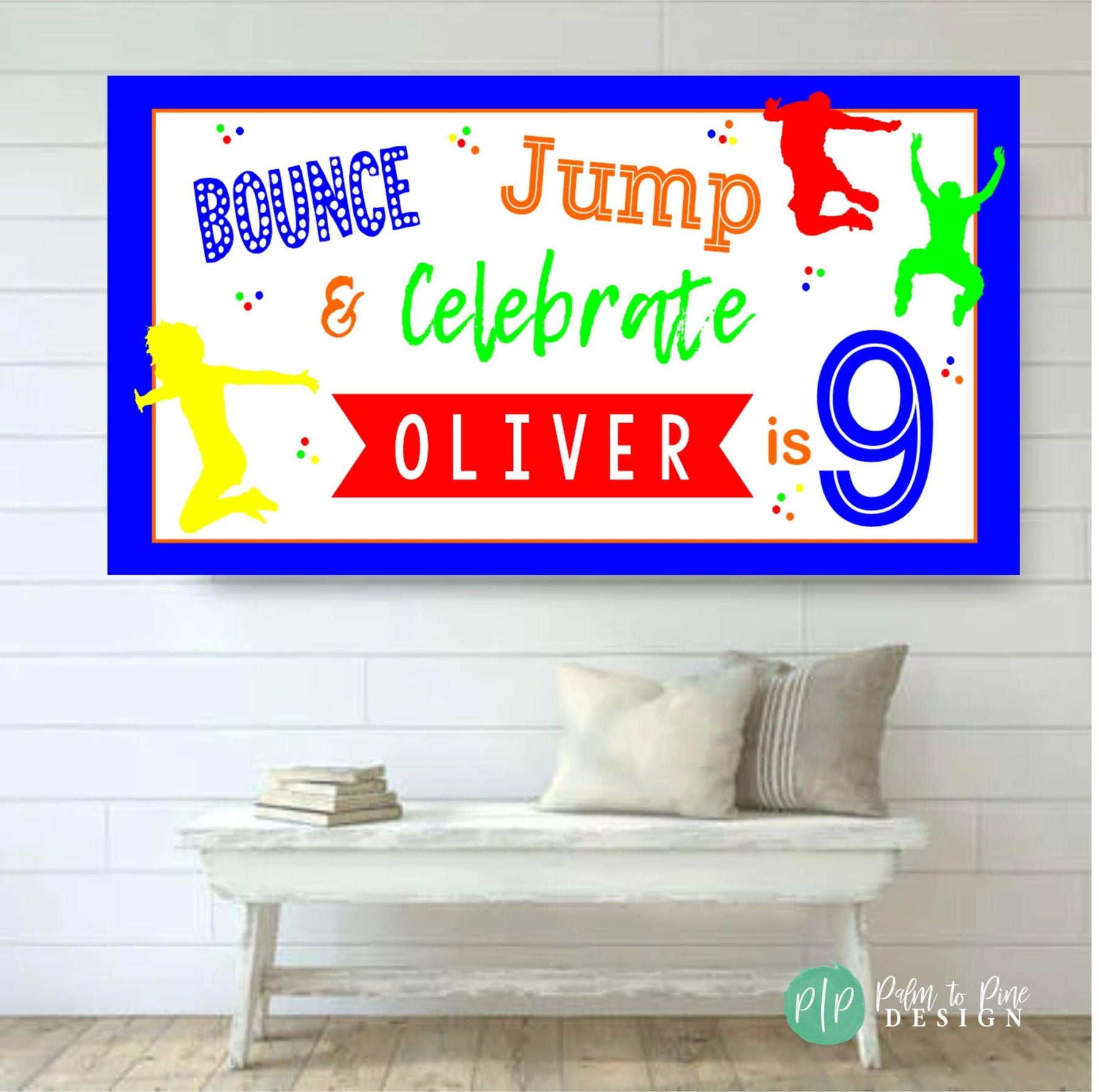 Enjoy your kids birthday with our Bright & Colorful personalized Bounce House Birthday Banner. This Bounce, Jump & Celebrate custom birthday banner promises to be the lively focal point of any age celebration. This fun colorful design can be customized with your party colors and is sure to be a party hit. This personalized kids birthday banner is made from durable vinyl for both indoor and outdoor events. Add an extra layer of fun and delight to your kid's birthday celebration with this bright and colorful bounce house banner!