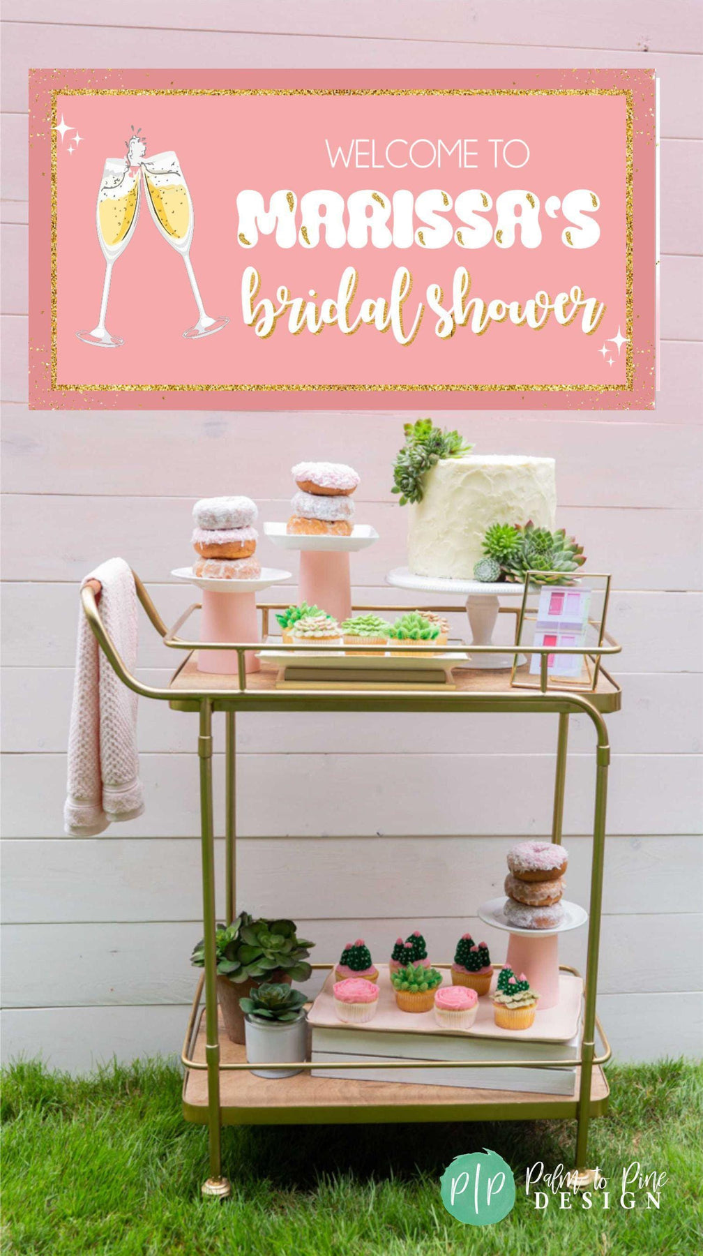 Personalized Bridal Shower Banner, Pink and Gold Champagne, Vinyl Sign