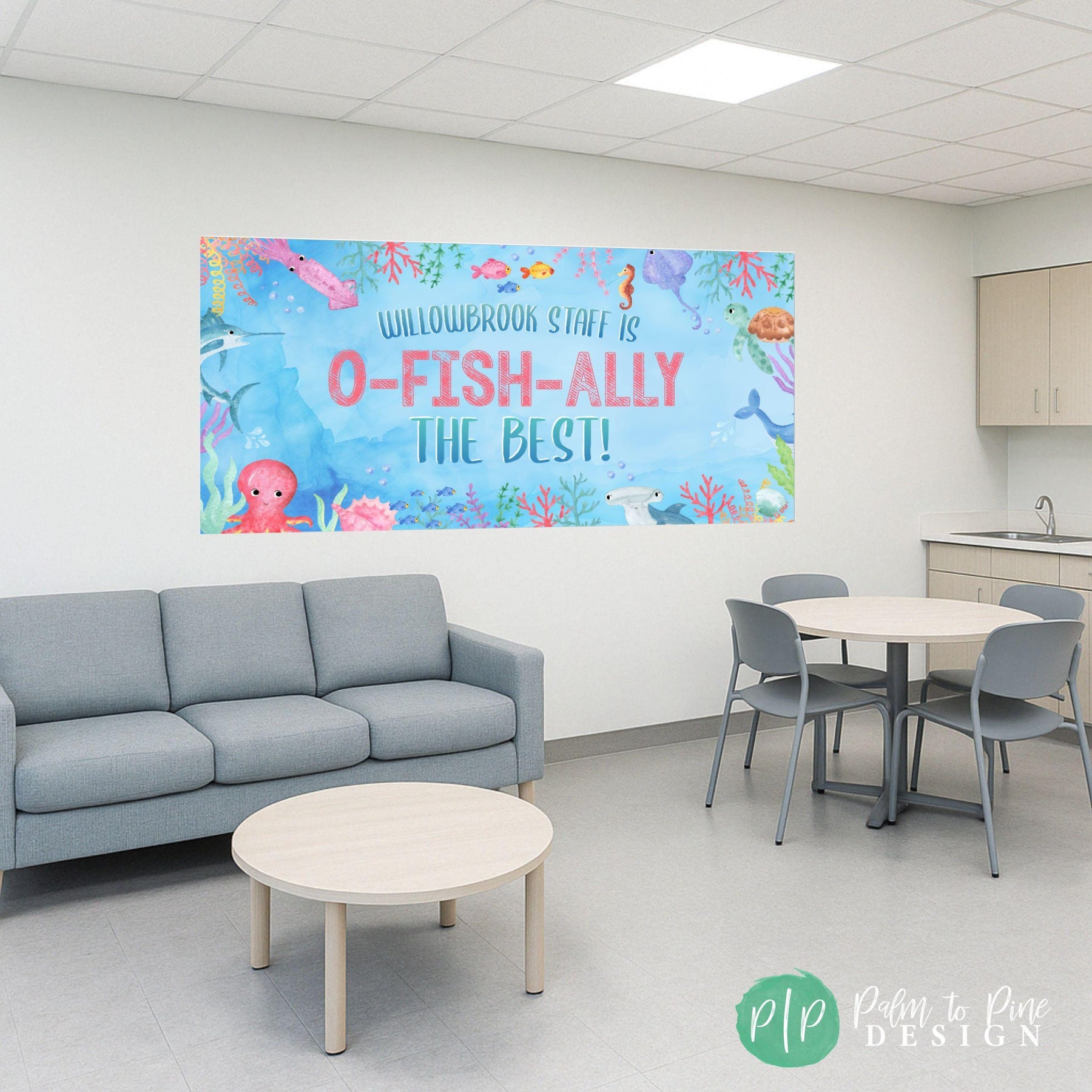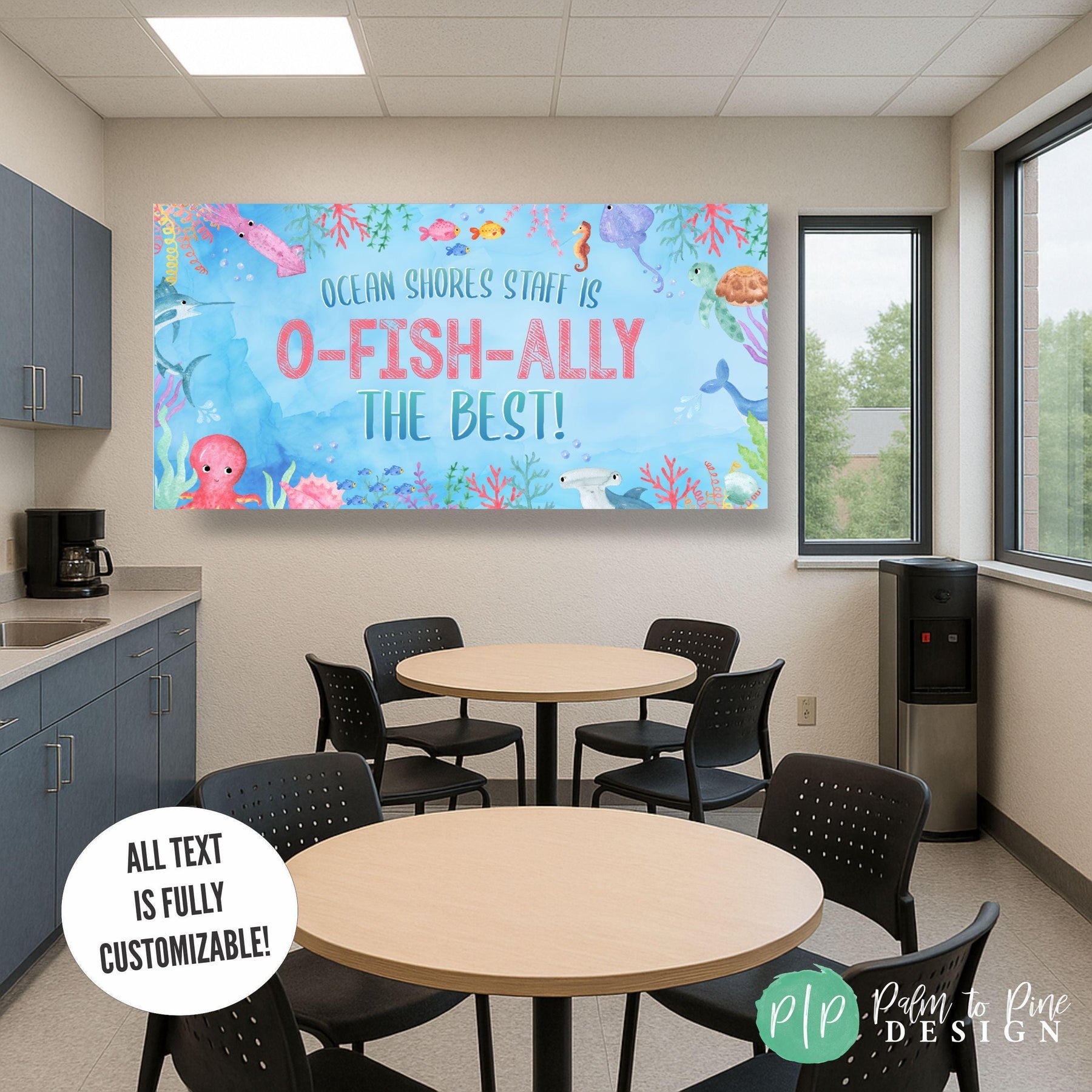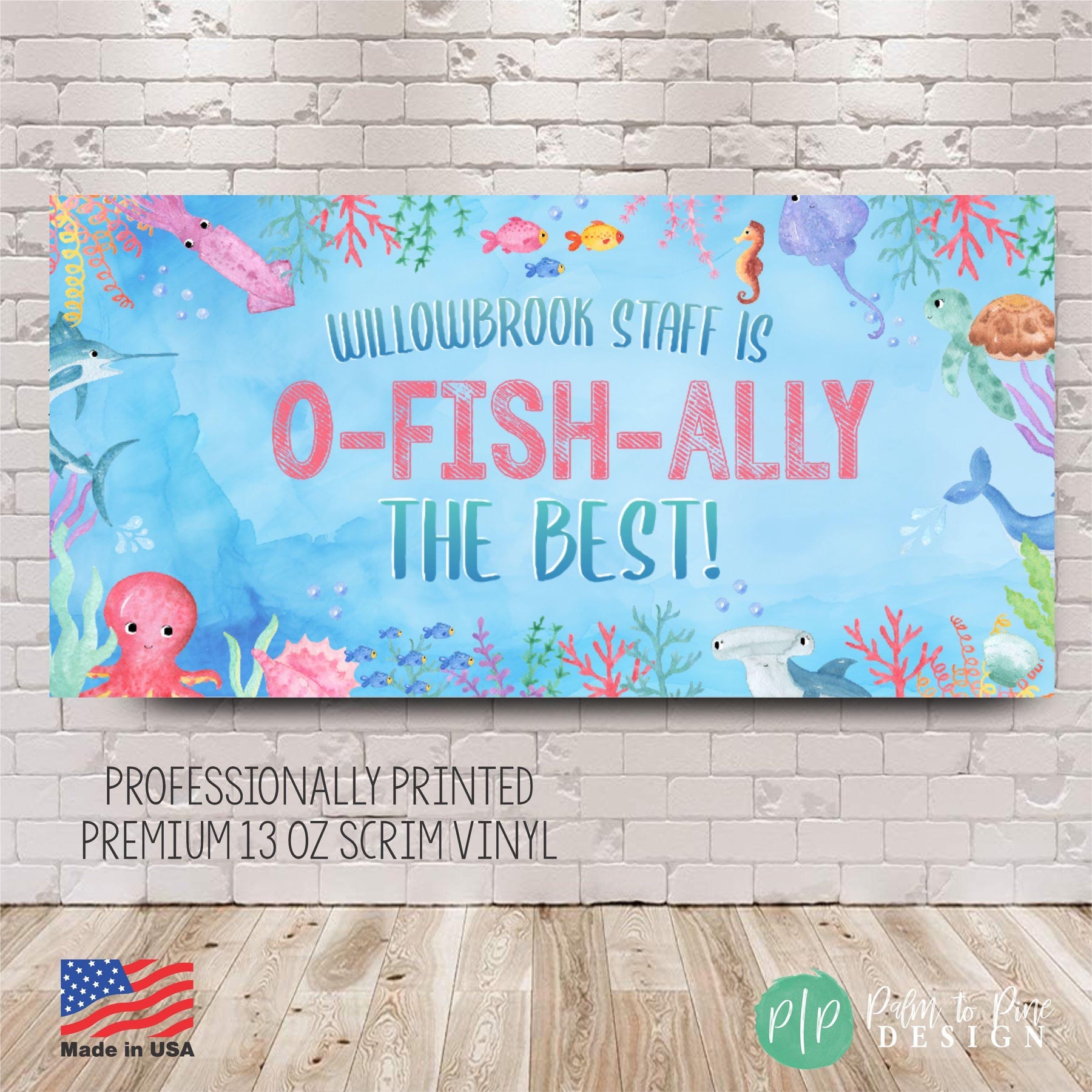 Dive Into Teacher & Staff Appreciation Week with This Under-the-Sea-Themed Banner! ๐๐ฆ Make a splash and celebrate your schoolโs team with this ocean-inspired appreciation banner featuring the cheerful message: "{School Name} Staff is O-Fish-Aly the Best!" ๐ณ๐ Whether you're transforming the staff lounge into an undersea escape, brightening up the front office, or creating a photo-ready reef of appreciation outdoors, this banner is sure to make waves!