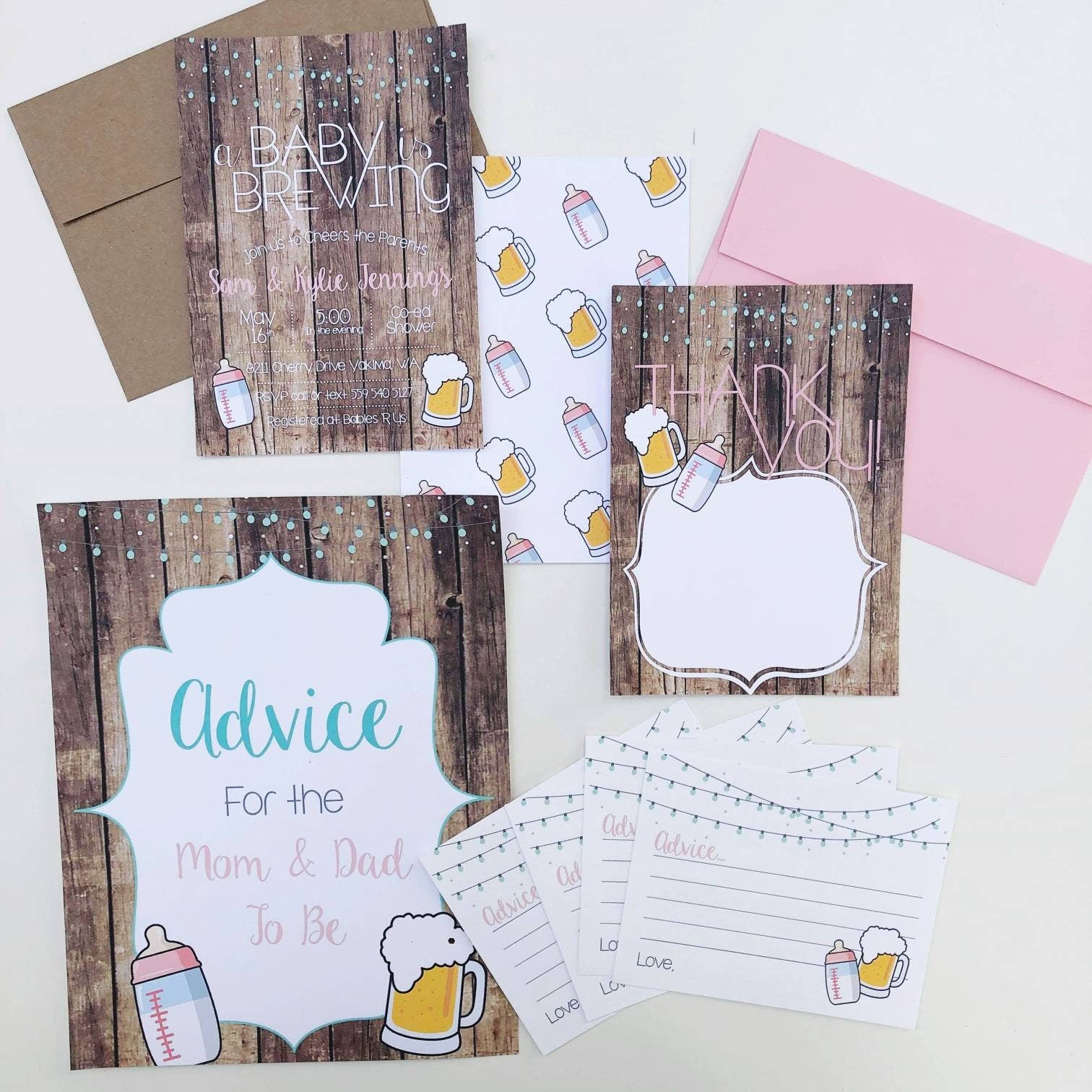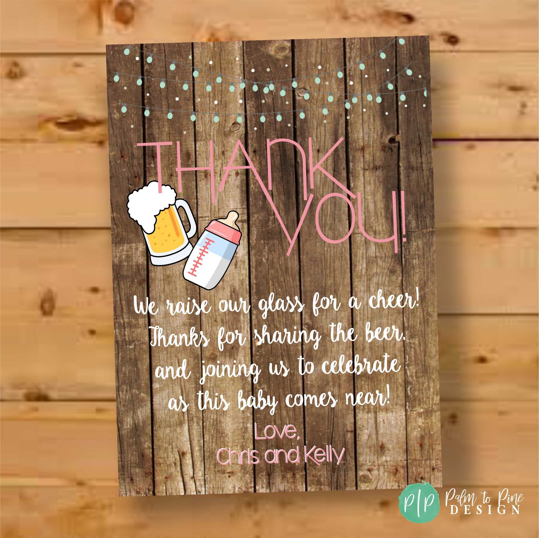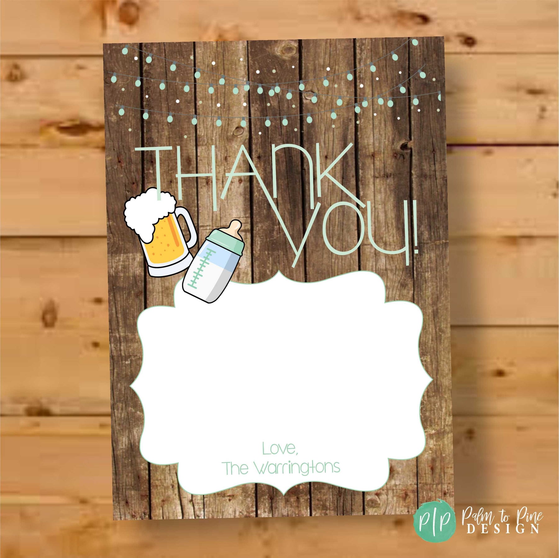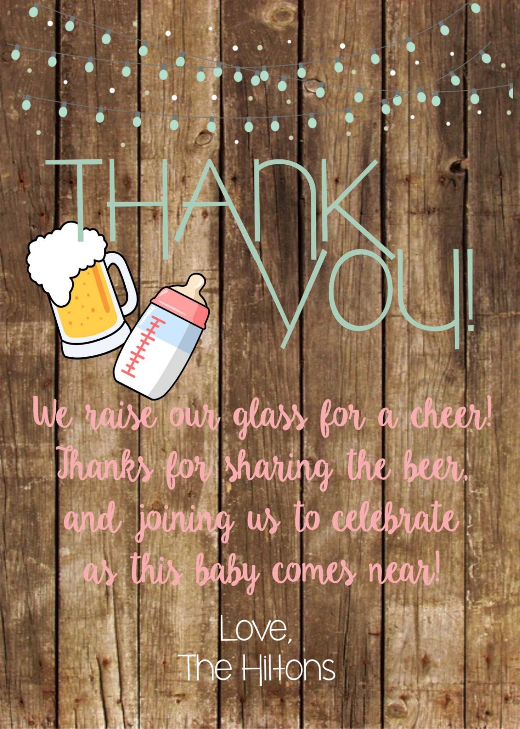 This rustic Baby is Brewing Thank You Card is the perfect compliment for your Co Ed Baby Shower or Beer and BabyQ party. The wording on this beer baby shower thank you card can be customized too for any type of Baby Shower, Couples Baby shower, Beer and Bottles Co Ed Shower or Beer and BabyQ party, just include your request in your notes to seller section at checkout!