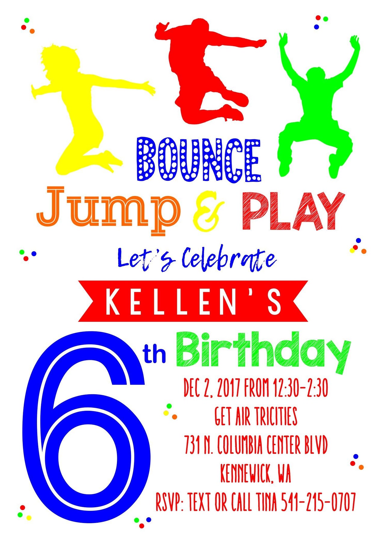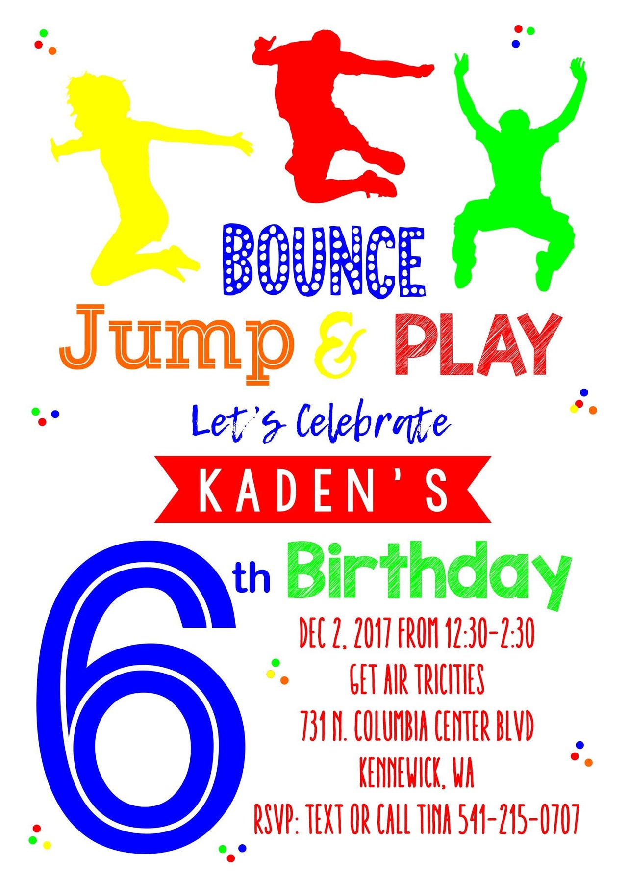 This Bounce, Jump and Play Birthday Invite is perfect for a girl or boy birthday invitation. This colorful jump invite can be used for a trampoline party, bounce house birthday party and more! Birthday Party guests will know to expect an active and fun birthday party when they get this jump card in the mail!