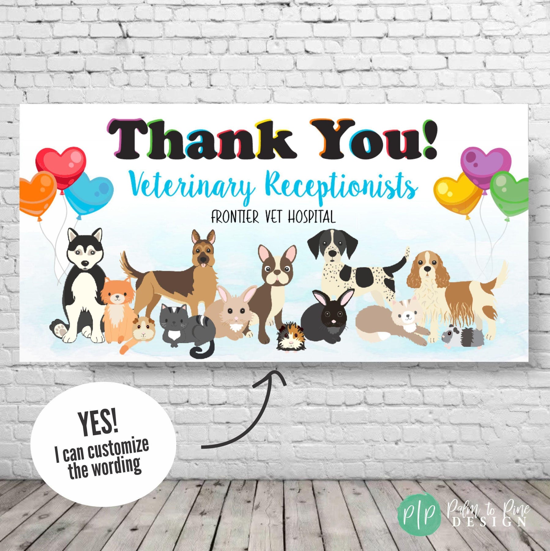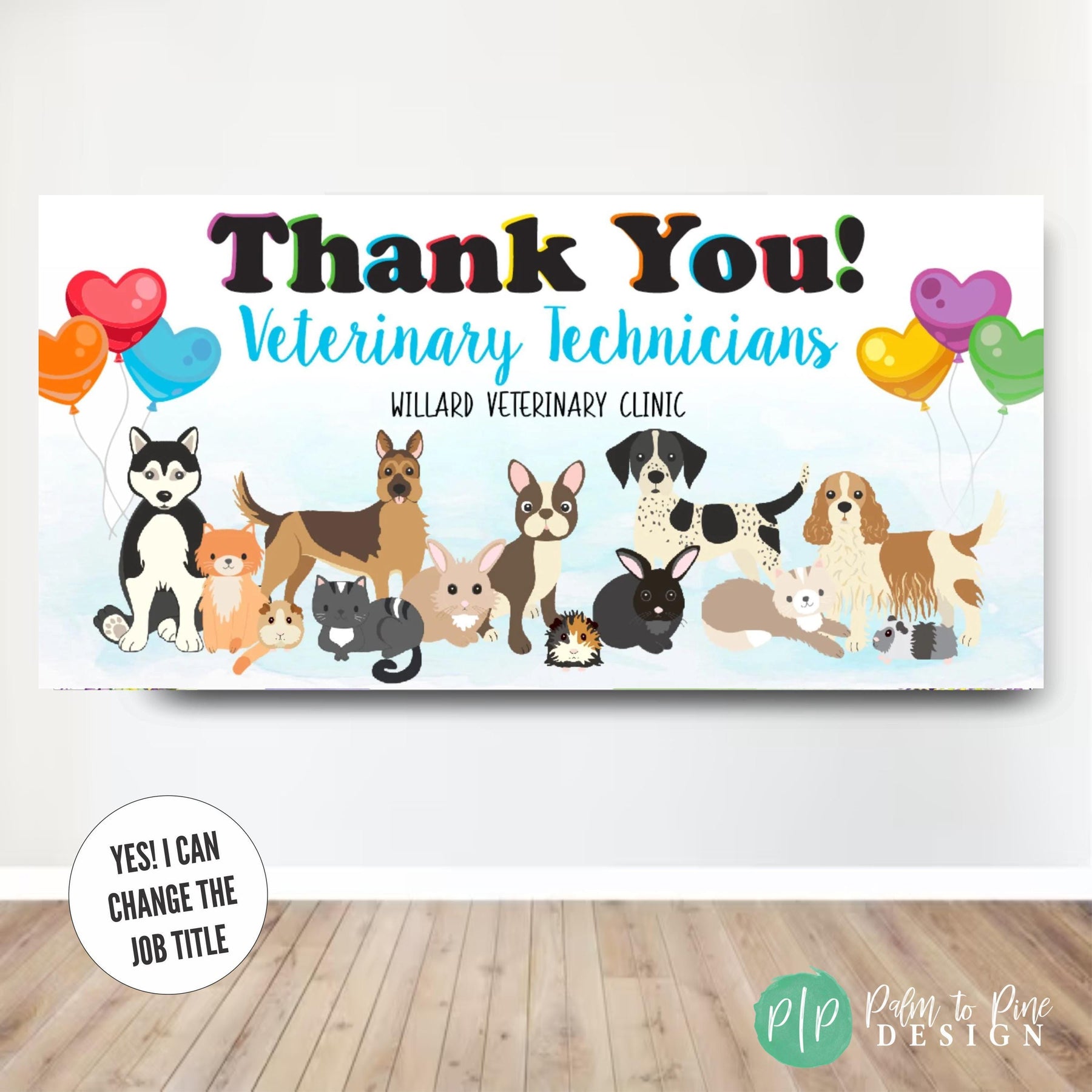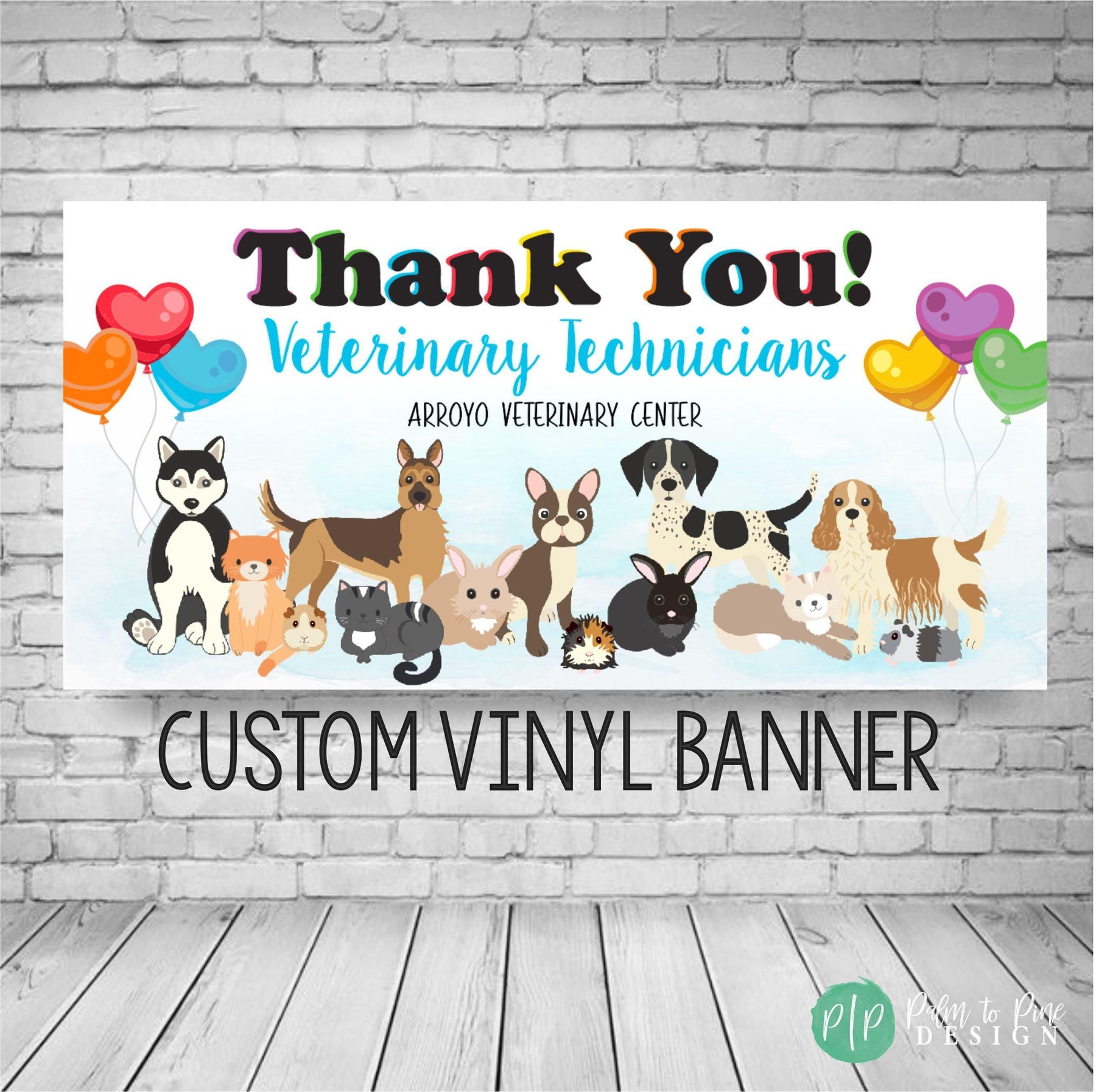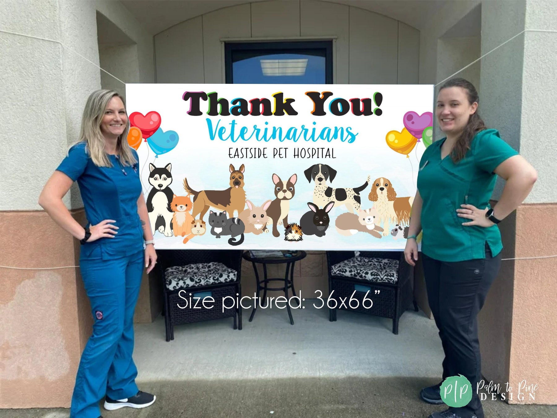 Say Thank You to your Veterinary Staff with a personalized Veterinarian Appreciation Banner for any occasion! Recognize the hard work of Practice Managers, CSR appreciation, Veterinary Assistants, Vet Techs etc. This high-quality vinyl banner is the perfect way to acknowledge the dedication and care that your staff and coworkers bring to their profession. It's more than just a gift, it is a heartfelt thank you.