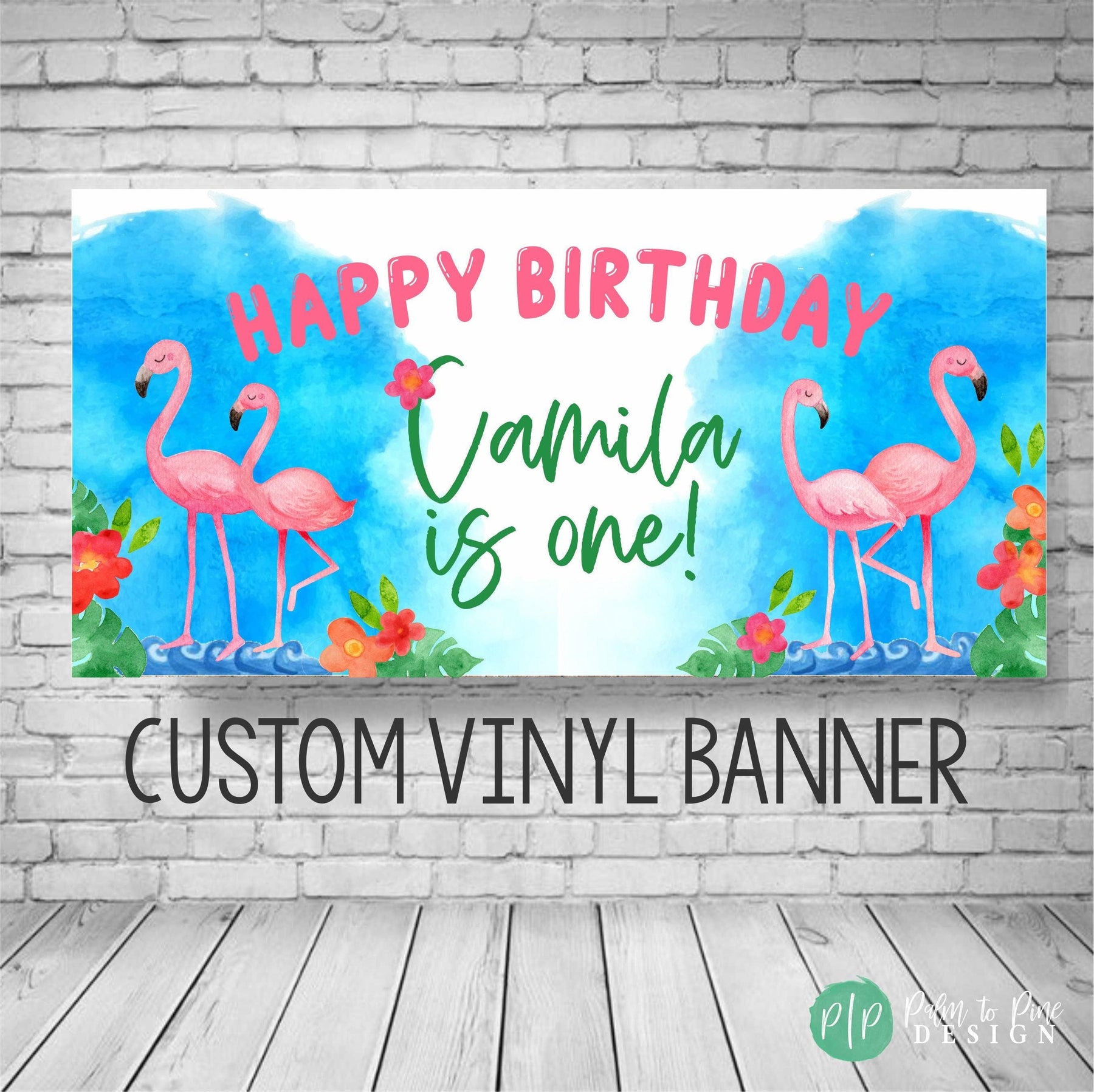 BANNER DETAILS: The banner comes in two finishes, digital or printed. The printed banner is sized as an 18x36", 24x48", 30x60", 36"x66", 42x84" or 48x96" and professionally printed on durable 13 oz scrim vinyl (this is a waterproof, super thick and highly durable banner that really makes a WOW statement at your tropical flamingo birthday party!)