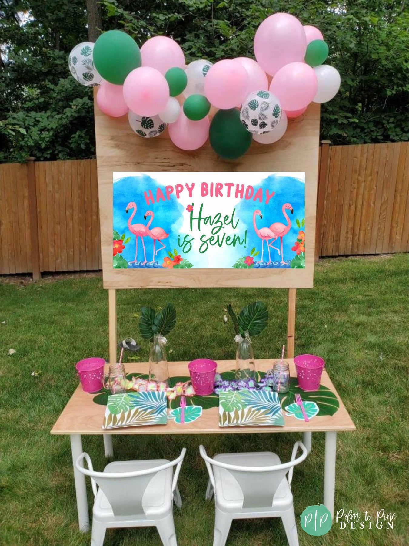 This tropical watercolor Flamingo birthday banner is perfect for your little Flamingo lover's birthday party or pool party. The watercolor Flamingo, tropical flowers and palm leaves background is the perfect decoration for your girls Flamingo birthday party. Use this durable vinyl banner for a outdoor welcome sign at a Flamingo party, as a photo backdrop for pictures or this vinyl banner makes the perfect decoration for behind a dessert table to flamingle! The colors won't fade in the sun and the banner can be hung in your little girls bedroom after the party is over!