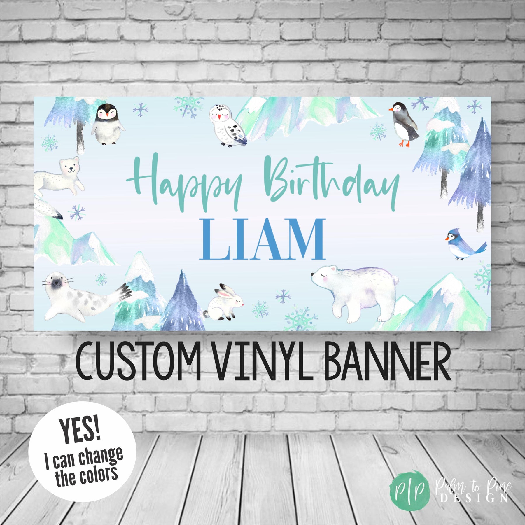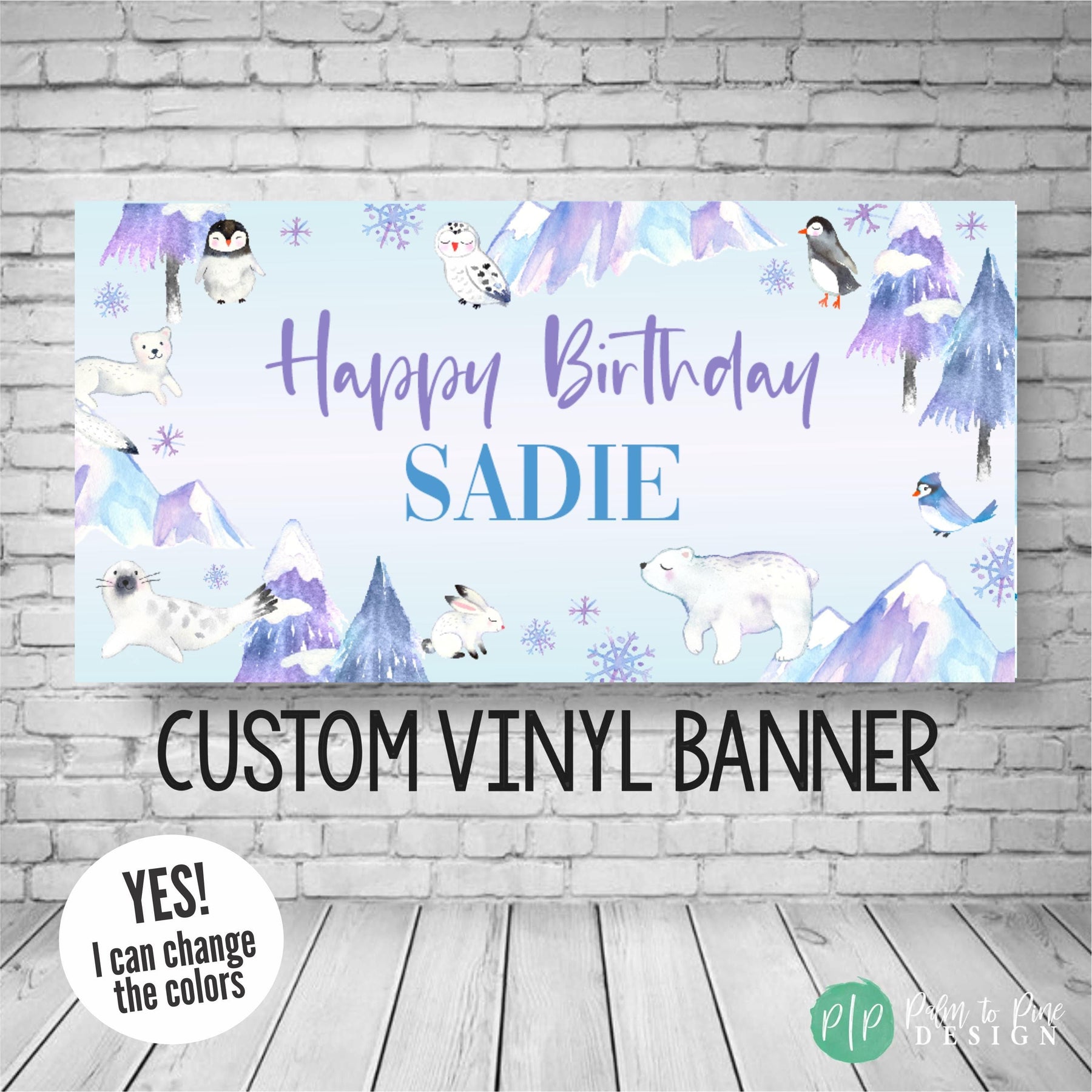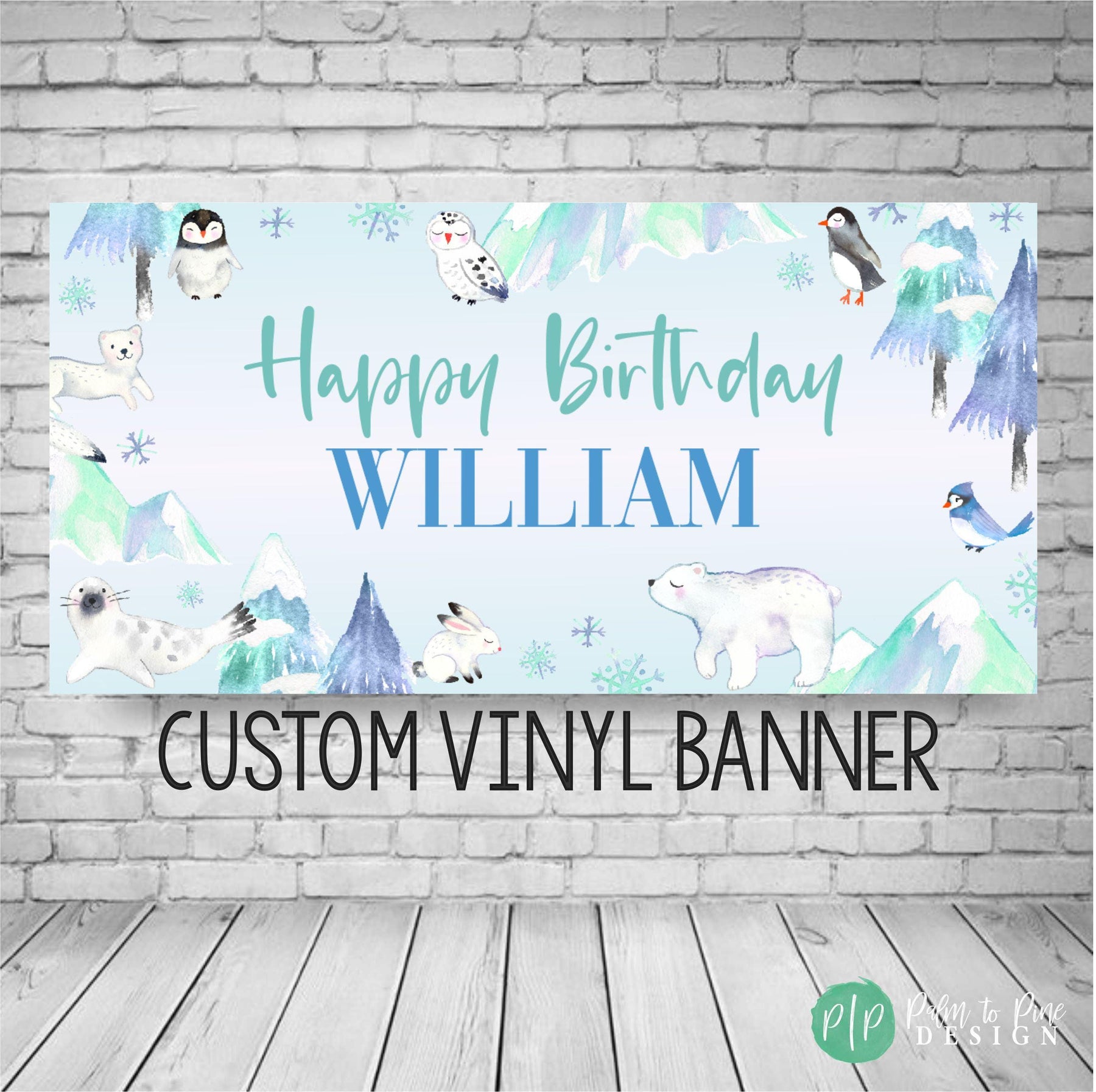 SPECS: The banner comes in two finishes, digital or printed. The printed banner is sized as an 18x36", 24x48", 30x60" or 36"x66", 42x84" or 48x96 and professionally printed on durable 13 oz scrim vinyl (this is a waterproof, super thick and highly durable banner that really makes a WOW statement at your polar birthday party!)